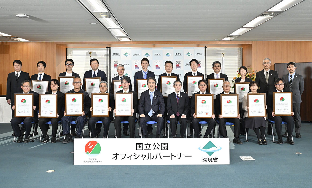 2025年12月18日、第14回国立公園オフィシャルパートナーシップ締結式が環境省で執り行われ、締結書が石原宏高環境大臣より当社取締役の浦川晋吾に手交されました。