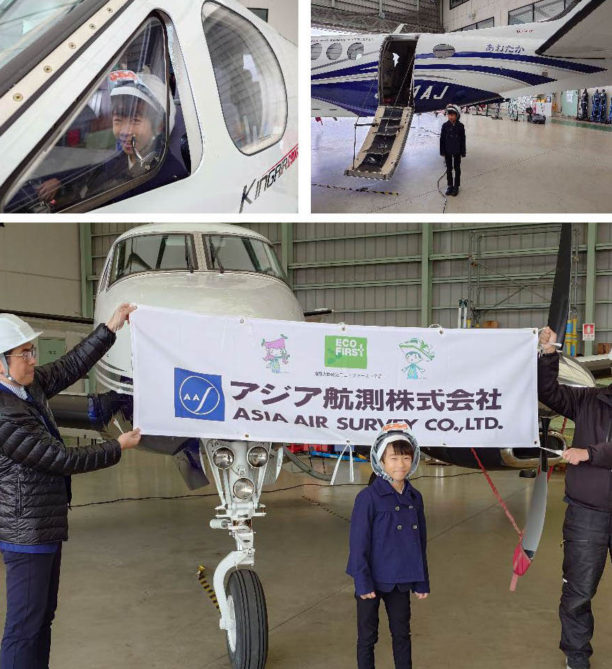 表彰式では、当社が航空機やドローンなどを使用して最先端の計測を行い、AI等を活用した解析技術を用いて国土保全や社会インフラのマネジメント、行政支援サービス等の空間情報コンサルタントとして事業を展開していること等をご説明し、表彰式後には、当社所属のパイロットが、自社所有機『JA81AJ「あおたか」』のコックピットにご案内しました。