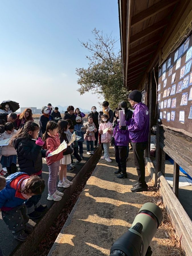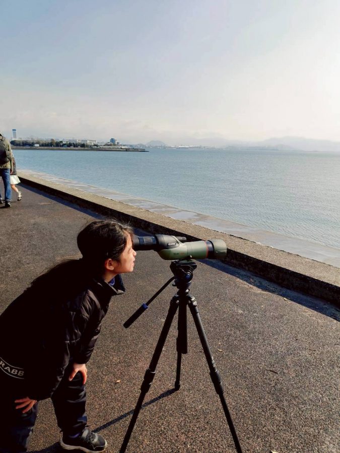 まずは、野鳥の会広島支部の方にご協力頂き、参加者お一人ずつプロ仕様の双眼鏡を借りて、双眼鏡の正しい使い方を教わりました。そのあとは、さっそく野鳥観察をスタート!子供たちも普段とは違う臨場感ある野鳥に触れて大はしゃぎ(^_^)
